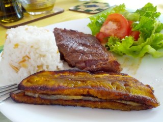 So, back to banana and cheese.. It really wasn’t too bad. The plantain isn’t so sweet, even though it’s the sweet version (maduro – ie mature, so it’s slightly sweeter than platanos, which are really the same fruit but when green and are used for different plantain dishes like patacons) – see my other article. The puzzle is that if you ask a Colombian if the yellow matter is platano maduro or platano – they would be able to tell you! Just like how Asians can tell if someone is Japanese or Thai or Chinese! The cheese here is, to put it mildly, tasteless, more for practicality than the connoisseur, so it didn’t have such an adverse effect when put between two slices of banana..