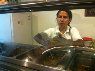 There were over 20 arepas at La Areperia Venezolana, with the variety determined by the combination of fillings. It was definitely the thing you need to warm up and wind down after an eardrum-breaking trip.. The arepa ladies scoped up fillings methodically and instinctively from stainless steel trays answering to flowing customer orders, while making new arepas from a white cornmeal dough in the same way that Chinese dumplings are made, by wrapping the wet mixture in both hands and tossing it into a ball shape, and then pressing it slightly flat into a pancake that is about 1 cm thick.