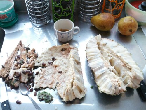 The second time I saw it, was at home, seeing it when it was dissected, with all the seeds and the interior structure. I was shocked to know that it was actually a Custard apple! A Custard apple that comes from the giant tropics! Really impressed.