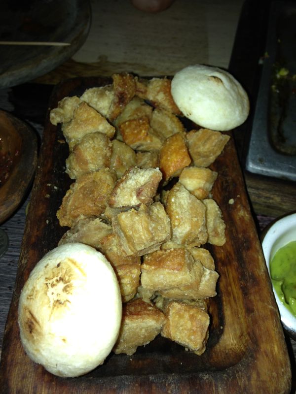Chicharrón can come in many different sizes and shapes. They can come with layers of fat and meat, in cubes, like the ones above. Or they can be just pieces of crunchy skin, which can be grudgingly addictive.. Or you’d have a long thin slice of crispy skin to hold on to, and eat it like a piece of hand-cut chip in a kid-like way. Anyway whatever way it comes in, nothing beats skin and fat. It’s just like butter, right?
